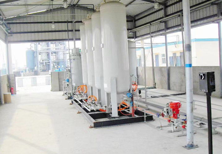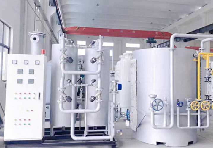 Gaseous ammonia from ammonia cylinders or tanks is depressurized through an ammonia pressure reducing valve. The reduced-pressure ammonia gas passes through a heat exchanger to exchange heat with cracked gas, and then is sent into the cracking furnace (filled with activated nickel catalyst inside). Ammonia is cracked into hydrogen-nitrogen mixed gas at 800℃. The high-temperature hydrogen-nitrogen mixed gas enters the heat exchanger again to exchange heat with gaseous ammonia, cooling down the cracked gas while recovering heat to heat up the gaseous ammonia. After heat exchange, the cracked gas is further cooled in a cooler before being sent to the point of use.