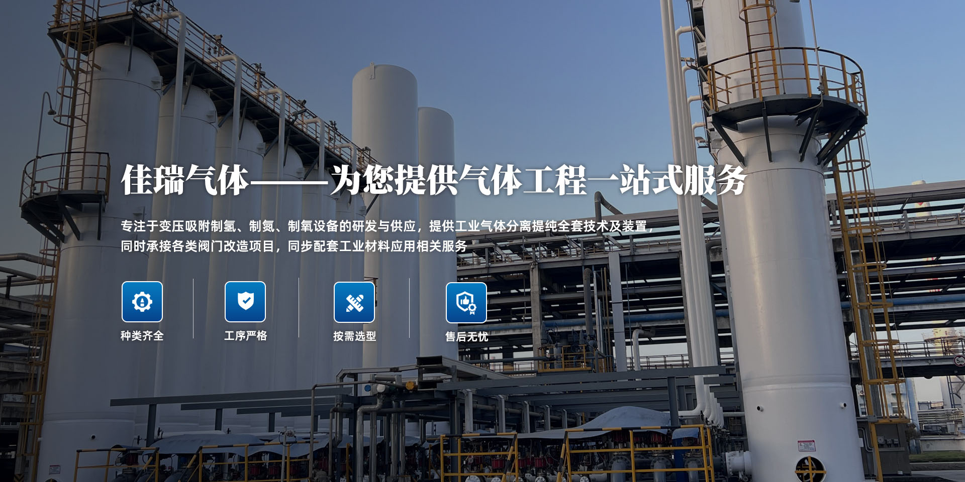 专注于变压吸附制氢、制氮、制氧设备的研发与供应,提供工业气体分离提纯全套技术及装置,同时承接各类阀门改造项目,同步配套工业材料应用相关服务